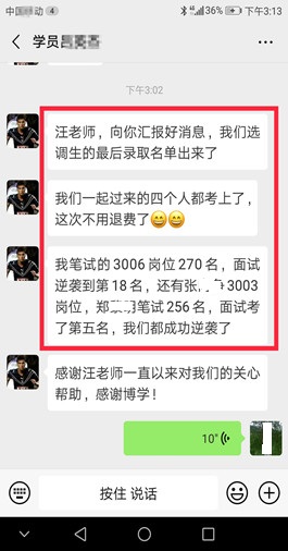 面試上岸有保障(指最終報考單位錄取)。 歷年來,事業(yè)單位面試培訓班上岸率有保障,均有據可查。博學面試課程體系無論是課程的深度、廣度、實戰(zhàn)性還是歷屆學員口碑和美譽度都遠高于其他同類輔導機構。面試狀元、最后一名反超成功的比比皆是。 |