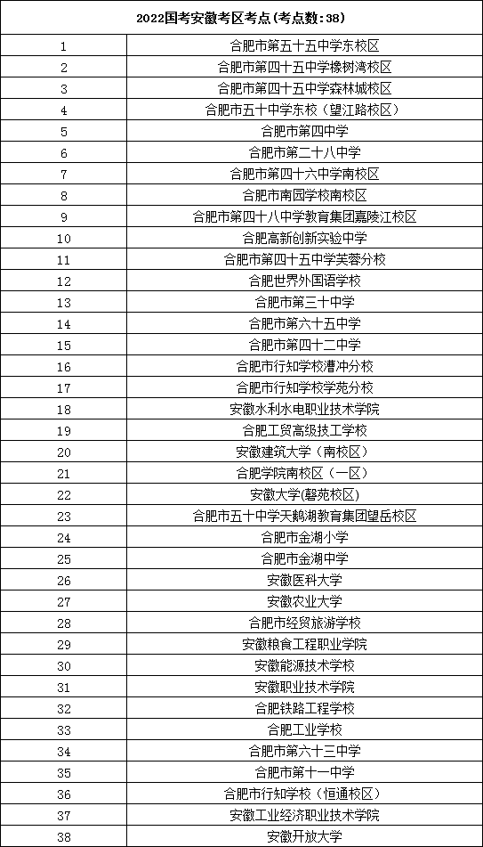 2022年國(guó)考安徽考區(qū)具體考點(diǎn)